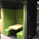 Fornecimento e montagem de mobiliário, composto por mesas de trabalho, cadeiras, armários, mesas de reunião e elementos de apoio.